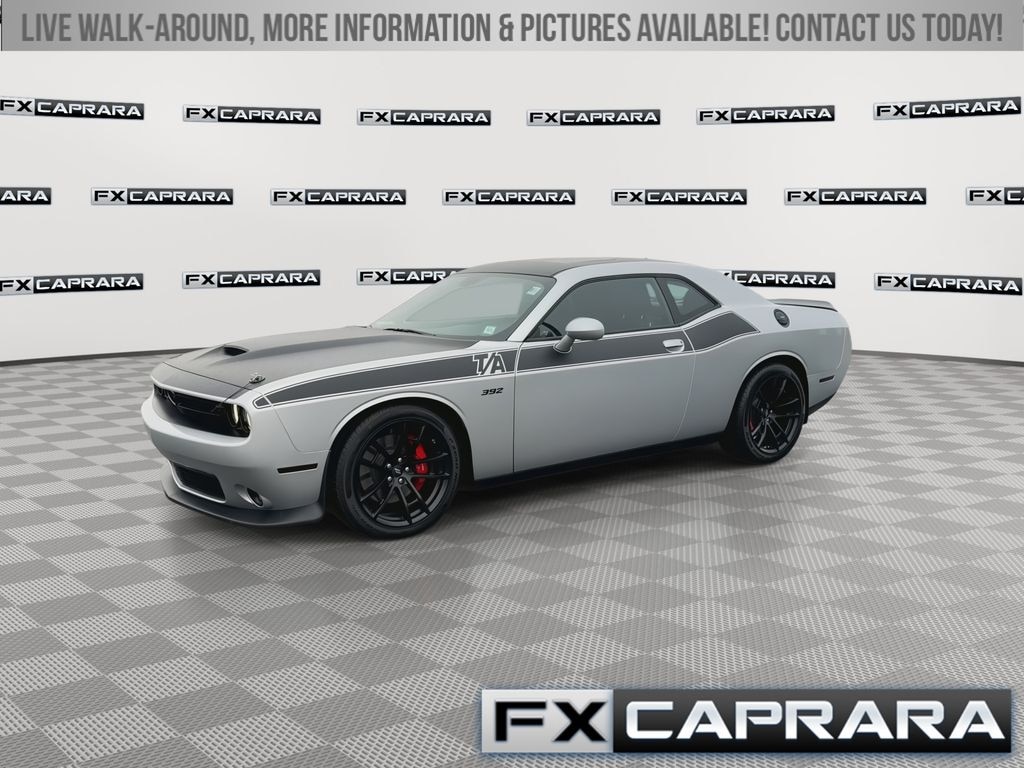 1-Yr SiriusXM Guardian Trial, 230MM Rear Axle, 392 Fender Decal, 4-Wheel Disc Brakes, 6 Speakers, ABS brakes, Air Conditioning, Alloy wheels, AM/FM radio: SiriusXM, Anti-whiplash front head restraints, Apple CarPlay, Apple CarPlay/Android Auto, Auto-dimming Rear-View mirror, Automatic temperature control, Black Satin Painted Hood, Blind Spot & Cross Path Detection, Brake assist, Bumpers: body-color, Compass, Delay-off headlights, Door Trim Panel w/Ambient Lighting, Driver Convenience Group, Driver door bin, Driver vanity mirror, Dual front impact airbags, Dual front side impact airbags, Electronic Stability Control, Emergency communication system: SiriusXM Guardian, Four wheel independent suspension, Front anti-roll bar, Front Bucket Seats, Front Center Armrest, Front dual zone A/C, Front fog lights, Front License Plate Bracket, Front reading lights, Fully automatic headlights, Functional Hood Scoop, Garage door transmitter, Gloss Black I/P Cluster Trim Rings, Google Android Auto, GPS Antenna Input, Heated door mirrors, Heated front seats, Heated Steering Wheel, Heated steering wheel, High-Intensity Discharge Headlamps, Houndstooth Cloth Performance Seats, Illuminated Air-Catcher Headlamps, Illuminated entry, Integrated Center Stack Radio, Integrated Voice Command w/Bluetooth, Leather Shift Knob, Low tire pressure warning, Media Hub (2 USB, AUX), MOPAR Black Hood Pin Kit, MOPAR Cold Air Intake System, Outside temperature display, Overhead airbag, Overhead console, Panic alarm, ParkView Rear Back-Up Camera, Passenger door bin, Passenger vanity mirror, Plus Package, Power door mirrors, Power driver seat, Power Multi-Function Foldaway Mirrors, Power steering, Power Sunroof, Power Tilt/Telescope Steering Column, Power windows, Premium-Stitched Dash Panel, Quick Order Package 23G R/T Scat Pack, Radio data system, Radio: Uconnect 4C w/8.4" Display, Radio/Driver Seat/Mirrors Memory, Rear anti-roll bar, Rear reading lights, Rear seat center armrest, Rear window defroster, Red Brake Calipers, Remote keyless entry, Satin Wrap Roof/Decklid, Scat Pack Logo Houndstooth Seat, Security system, Shark Fin Antenna, SiriusXM Satellite Radio, Speed control, Speed-sensing steering, Split folding rear seat, Spoiler, Sport steering wheel, Steering wheel mounted audio controls, T/A Bodyside Graphic, T/A Package, T/A Spoiler Decal, Tachometer, Telescoping steering wheel, Tilt steering wheel, Traction control, Trip computer, USB Host Flip, Variably intermittent wipers, Wheels: 20" x 9.5" Forged/Painted Aluminum, Wheels: 20" x 9" Lo Gloss Granite Crystal, White Face Instrument Cluster.